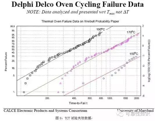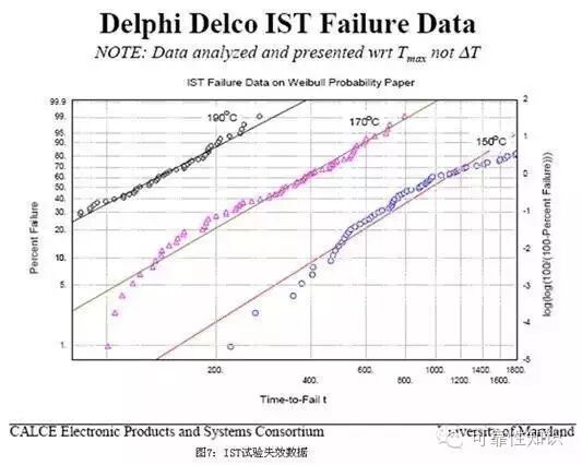 IST因為測試時間短,溫度轉換速率大,對測試樣品的疲勞老化影響也較大,故可以使試樣早早發(fā)生失效,比對圖7的IST失效數(shù)據(jù)和圖8的TCT失效數(shù)據(jù),可見在相同的條件下,IST試驗很早就發(fā)生的失效: |
