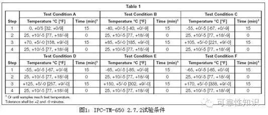 IPC定義的熱沖擊(Thermal Shock)試驗,其與封裝業(yè)JEDEC的溫度循環(huán)試驗(TCT)類似,但與JEDEC的熱沖擊試驗(TST)有差異,因為IPC的熱沖擊試驗(TS)和JEDEC的溫度循環(huán)試驗(TCT),都是基于空氣傳熱的,而JEDEC的熱沖擊試驗(TST)是基于液體傳熱的,其溫度轉換速率遠遠高于空氣傳熱,故如果客戶要求測試TS時,還是需要確定所依據(jù)的標準和試驗條件。